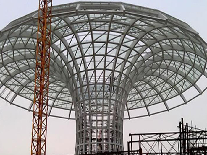 二、球形网架结构因其结构新颖,受力合理,自重轻、用钢量低等优点。如大型体育场馆球形兴平螺栓球网架、公共场馆球形网架、电厂兴平螺栓球网架、水泥工业球形网架、仓储物流球形网架、兴平干煤棚工业球形网架、兴平收费站兴平加油站球形网架、展览中心、影剧院、商场、航站楼、候车厅、工厂兴平车间、仓库、电视塔等球形螺栓球节点网架。国内球形网架结构主要分为:兴平焊接球节点网架及螺栓球节点网架两种。螺栓球节点网架其构件工厂内加工量较大,现场安装便捷,适用于现场工期紧,兴平施工条件、用电量受制约,网架形状复杂、兴平杆件定位困难的异形结构。螺栓球节点球形网架系统基本由兴平杆件、螺栓球、支撑支座等组成。按照节点形式可分为交叉兴平桁架体系、四角锥体系、三角锥体系等。支撑方式多为固定支座支撑。对于大面积、大跨度及有特殊受力或伸缩要求的网架结构可采用橡胶支座、滑移支座、球铰支座等支撑形式,以满足结构自身的受力稳定、均衡,便于内力释放等设计要求。